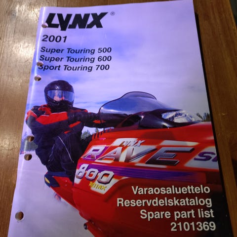 Lynx Enduro 400 F varaosaluettelo vuodelta 2001. Kirjassa on räjäytyskuvat ja osaluettelot moottorikelkan eri osakokonaisuuksista, kuten moottorista, voimansiirrosta ja alustasta. Mukana on osanumeroita ja nimikkeitä useilla kielillä (mm. suomi, ruotsi, englanti), mikä helpottaa oikeiden varaosien tunnistamista ja tilaamista kyseiseen Lynx Enduro 400 F -malliin vuodelle 2001.
