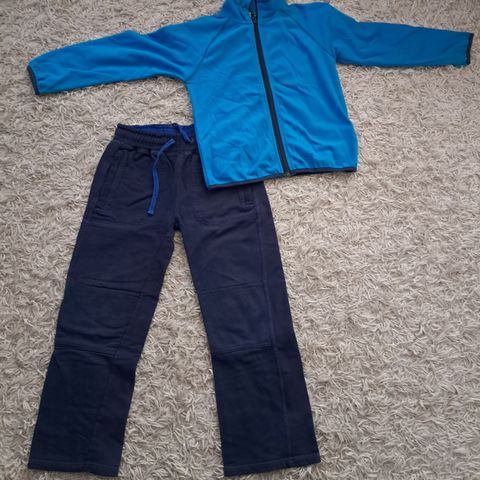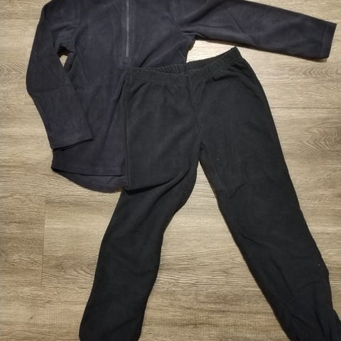 XXL v.sin. pusero, 150cm ohuehko musta fleece pusero, 150cm sin fleece housut, 140cm harmaa pusero, 140cm pun ohuempi pusero, 140cm persikan värinen fleece takki, 128cm harmaa pusero ja Reiman 128cm sininen fleece takki, jossa vuori etuosassa.