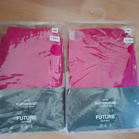 Kaikki fleece vaatteita vaihdellen ohuemmasta paksumpaa kankaaseen. Kunto ok käytetty, jotain käytön jälkeä voi löytyä (ainakin persikan värisessä hihansuissa)
