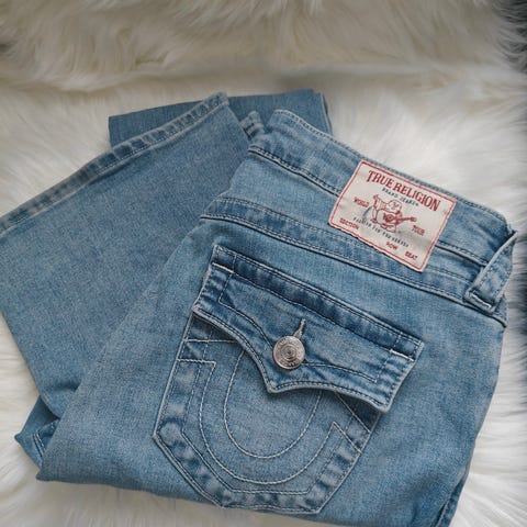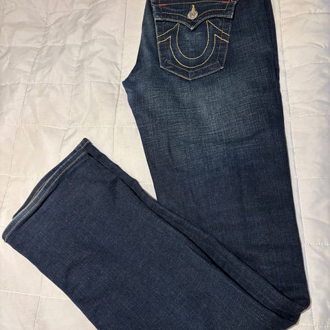 True Religion Becca naisten farkut, malli Mid Rise Bootcut. Väri tummansininen. Materiaali denim. Koko M, vyötärökoko W29. Klassinen viisitaskuinen malli, jossa takataskuissa koristetikkaukset ja nappikiinnitys. Sopivat arkipukeutumiseen ja yhdisteltäväksi erilaisten yläosien kanssa.
