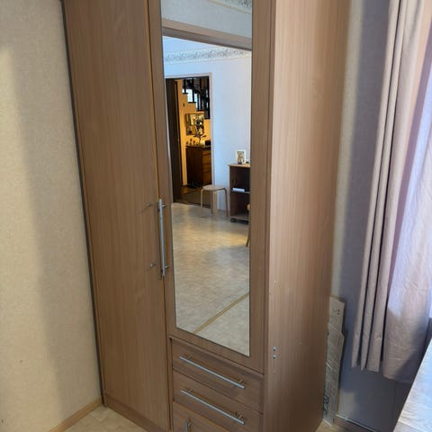 Ehjät vaatekaapit, joissa pitkät kaapit ja yläkaapit.