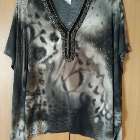 Tämä turkoosi/oranssikuvioinen pusero on erittäin hyväkuntoinen.