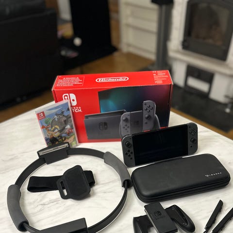 Myydään Nintendo Switch -pelikonsoli varusteineen.