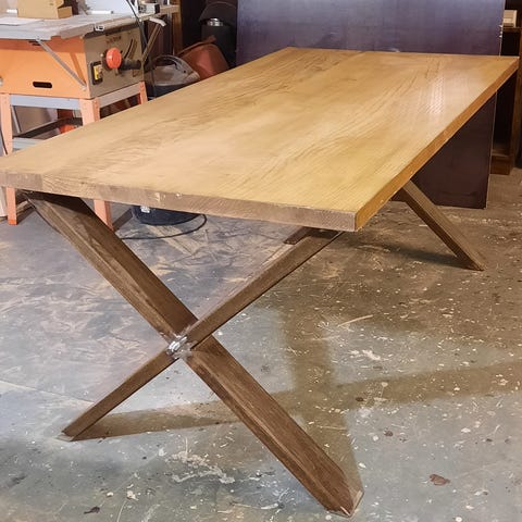 Puusepän tekemä saarnipöytä etsii uutta kotia muuton vuoksi. Pinnassa jonkin verran kulumaa ja käytönjälkiä, mutta yleisilme on mielestäni siisti. Ostaja saa mukaan Osmo Color -vahan.