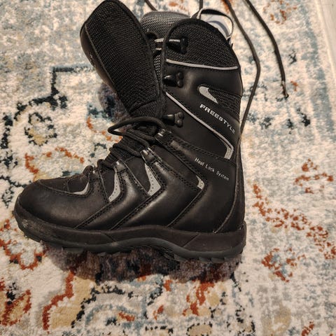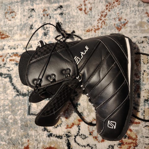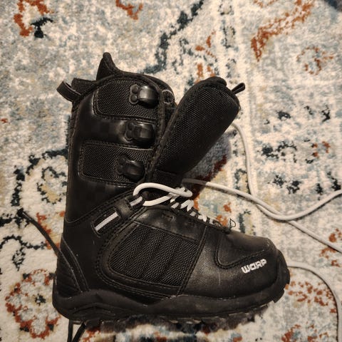 Siistit lumilautakengät. Meille pienet mutta sopivat ja toimivat jollekkin toiselle.