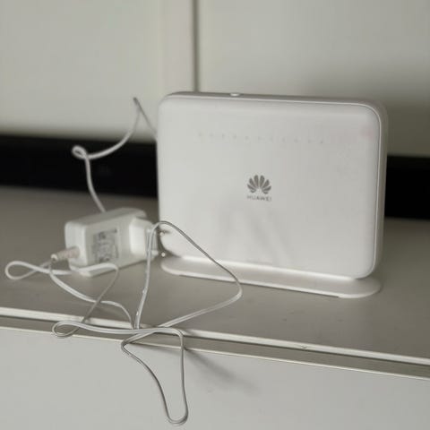 Huawei OptiXstar K562 reititin valkoisena. Kaksitaajuuksinen WiFi-reititin, jossa useita Ethernet-portteja langallista verkkoa varten. Soveltuu kotiverkon tai pienen toimiston langattoman ja langallisen verkkoyhteyden jakamiseen. Laitteessa on virtaliitäntä, reset-painike ja ilmanvaihtoaukot pohjassa. Laite + virtalähteet. Voidaan myydä myös yksitellen, mutta mielummin parina (tulee tietty yksillä postikuluilla)