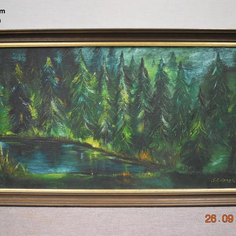 Hyväkuntoinen taulu. Unto Piispanen. Liituvärityö, puiset kehykset ja suojapleksi. Kuvassa soinen erämaamaisema Lapista. Vuosiluku mahdollisesti piilossa reunarajauksen alla. Kehyksessä pientä kulumaa. Ulkomitat 44 x 65 cm (kehyksen sisämitta 41 x 62 cm).