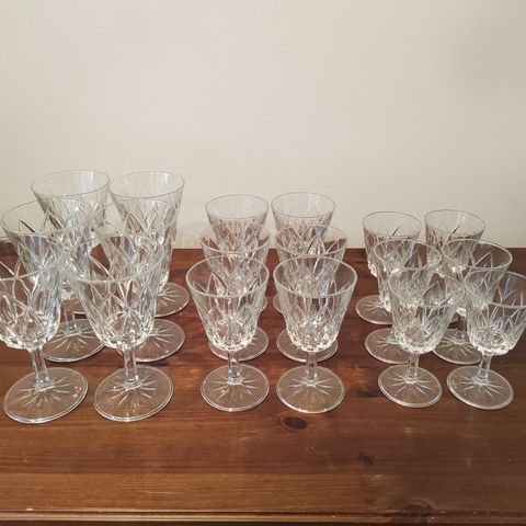 lasidekanterit kirkasta lasia. Dekanterit ovat korkeita ja kapeakaulaisia, ja niissä on irrotettavat, urakuvioidut lasitulpat. Pullomaisissa osissa on pystysuuntaista, pyöristettyä viistekuviointia, joka toistuu myös tulpissa. Sopivat esimerkiksi viinin tai muiden juomien tarjoiluun kattauksessa. Kuvissa näkyy lisäksi samaan sarjaan sopivia jalallisia laseja, joissa on vastaava koristekuvio alaosassa.