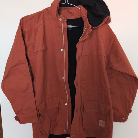 Aarrekid lasten parka takki, koko 134. Unisex-mallinen takki, väriltään ruosteen punainen. Valmistettu puuvillasta, sekä päällikangas että vuori 100 % puuvillaa. Takissa on huppu, vetoketju ja painonapit edessä sekä etutaskut. Sopii arkeen ja ulkoiluun lapselle, joka käyttää kokoa 134.