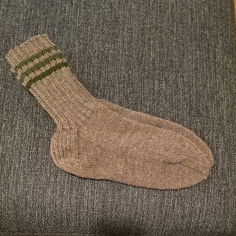 Tummanharmaat villasukat mustilla raidoilla, koko n. 41-42. Lanka 75% villaa ja 25% polyamidia.