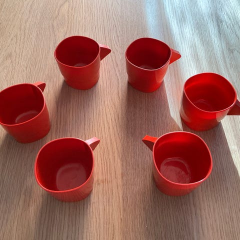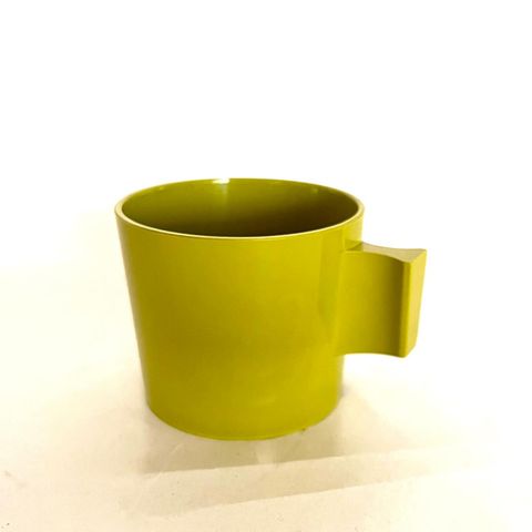 Arabia Fiskars 360 years -muki. Valkoinen posliinimuki, jossa sininen Fiskars-aiheinen painatus.