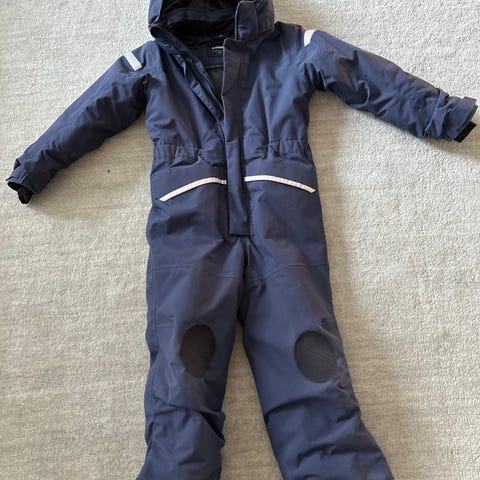 Annetaan Didriksons toppahaalari. Koko 120, mutta extend size saumat avattu, joten reilu. Kulumaa ja piinttymää löytyy. Peppuosassa pikkuinen reikä. Mielestäni ei kuitenkaan näytä vielä epäsiistiltä päällä.