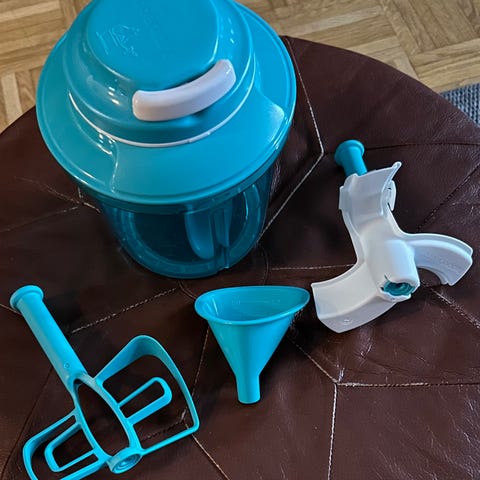 Hyvä silppuri sipulin, yrttien ynnä muun käyttöön.