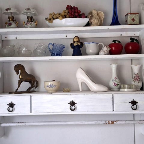 Kuvien mukainen hylly, maalattu valkoiseksi.