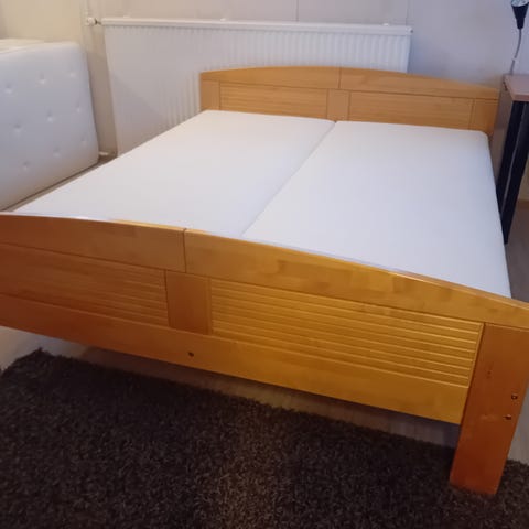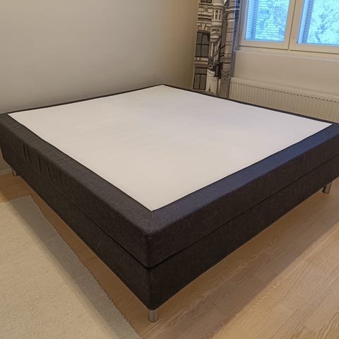 Myynnissä tarpeeton sängynrunko ja joustinpatja. Ovat olleet vierashuoneessa käytössä. Meillä eläimiä, joten karvoja on kuten kuvissä näkyy. Joustinpatjassa kangas on liikkunut käytössä. Huomioi, että sijauspatjaa ei ole mukana. Autetaan kantamisessa.