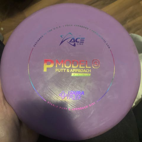Prodigy Ace Line P Model S on frisbeegolf-putteri ja lähestymiskiekko. Kiekko on Base Grip -muovia ja väriltään oranssi. Sopii putteihin ja lyhyisiin lähestymisheittoihin frisbeegolf-radalla. Kiekon yläpinnassa on painatukset mallimerkinnöistä ja alapuolella käsinkirjoitettu painomerkintä.