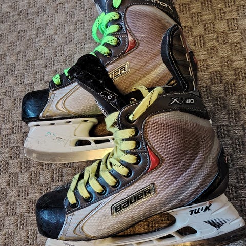 Pieneksi jääneet, todella hyväkuntoiset Bauer Vapor X100 4,5EE (38) luistimet. Irroitettava terä.