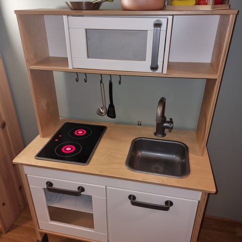 Myydään hyvässä kunnossa IKEA DUKTIG Leikkikeittiö ja keittiötarvikeet.