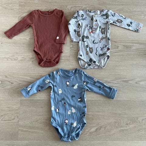 Bodyja koossa 68. Kaikki (9kpl) settinä yhteishintaan 6€. Tai erikseen ostettuna 0-3€.