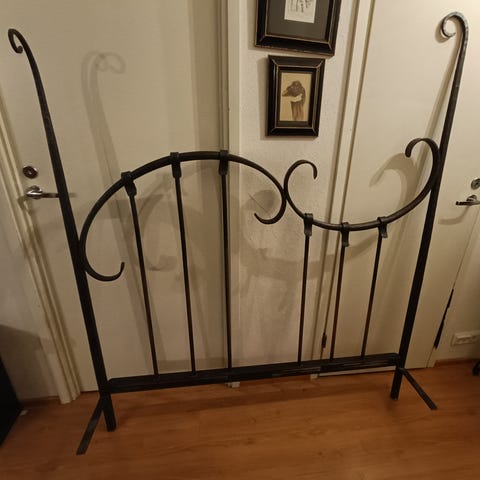Tummanruskea rottinkinen vintage sängyn pääty. Leveys 140 alareunasta, korkeus 80cm lattiasta korkeimpaan kohtaan. Molemmissa kiinnityskohdissa on vikaa, mutta eivät estä käyttöä. Toisesta lähtenyt pala pois, toisessa halkeama. Ka.kuvat. Vain nouto Tampereelta