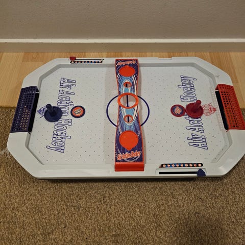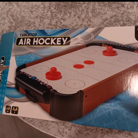 Myydään lasten pieni ilmakiekkopeli, vähän jo kulumaa mutta toimiva. Mukana kaksi kiekkoa. Patterit varmaan kohta vaihdettava mutta pääsee näillä alkuun 😄
