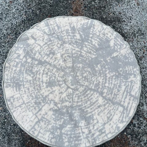 Iso pyöreä juuttimatto. Halkaisija 240cm. Ollut sisällä, mutta sopii myös ulkokäyttöön. On korjailtu, mutta reikiä tullut lisää. Ei siis enää edustuskäyttöön passaa.