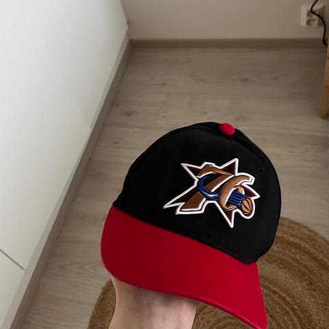 Todella siisti ja hyväkuntoinen Yupoong musta snapback-mallinen lippalakki, jonka edessä olevassa logossa on ristikkäiset pesäpallomailat, kirjaimet "S" ja "W", numero "0" sekä pääkalloaiheinen hahmo. Lippiksen edustassa esiintyvät merkit muodostavat lyhenteen OSW. Hatussa on suora lippa ja säädettävä kiinnitys takana.