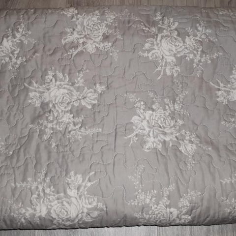 Päiväpeite, jossa kaksivärinen vaaleanpunaisen sävyinen päällinen. Päällisen pinnassa on kohokuvioitu, nuolimainen tikkauskuvio. Mitat:140x200cm