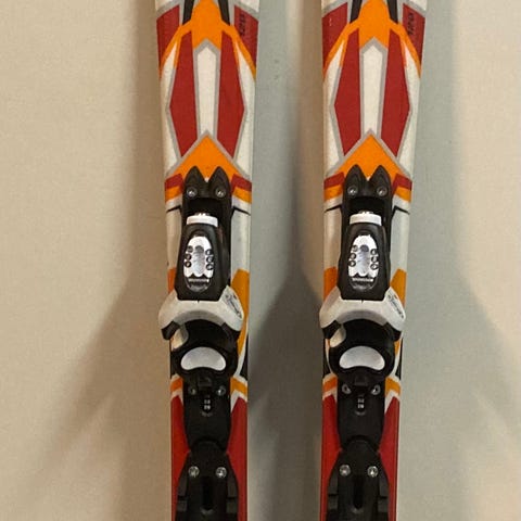 Downhill ski poles, 120 cm tall, made by Elan. Intersport page recommends that the skier is 178-185 cm tall.