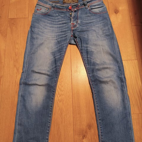Jacob Cohën miesten farkut. Väri sininen. Vyötärökoko W38 ja valmistajan kokomerkintä L. Perinteinen viisitaskuinen malli, jossa vetoketju- ja nappikiinnitys. Myyn koska itselle liian isot. Sopivat arkikäyttöön ja yhdisteltäväksi erilaisten yläosien kanssa. Erinomaisessa kunnossa. Nouto Pajamäestä 00360 tai postitus. Tarjoa!
