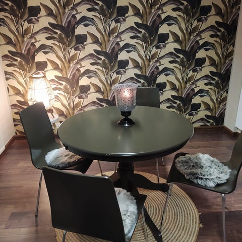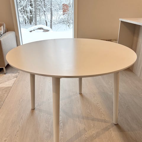 Myydään pyöreä ruokapöytä, voi jatkaa pöytää isommaksi. Jykevä, painava. Väri: musta.