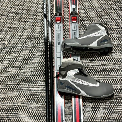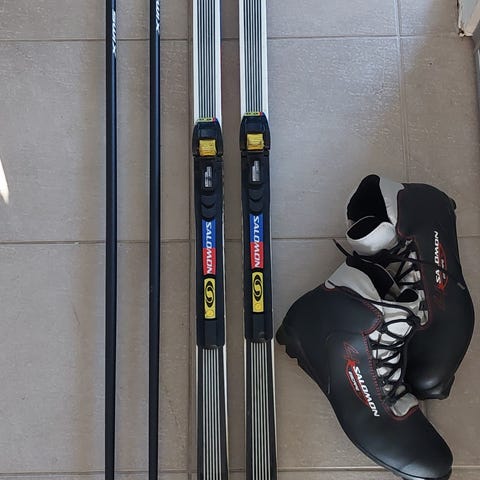 Salomon sukset 201cm sukset perinteinen hiihto. Exel sauvat 150cm ja madshus 45 monot