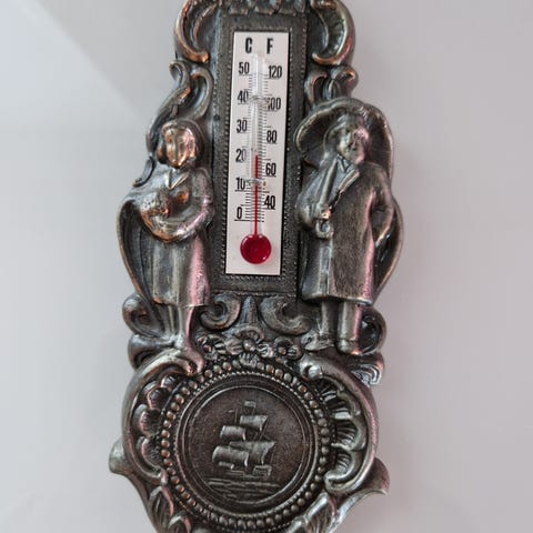 Seinälle ripustettava lämpömittari koriste-esine. Tummaa, painavaa puuta. Kaikki mittarit eivät välttämättä ole kunnossa.