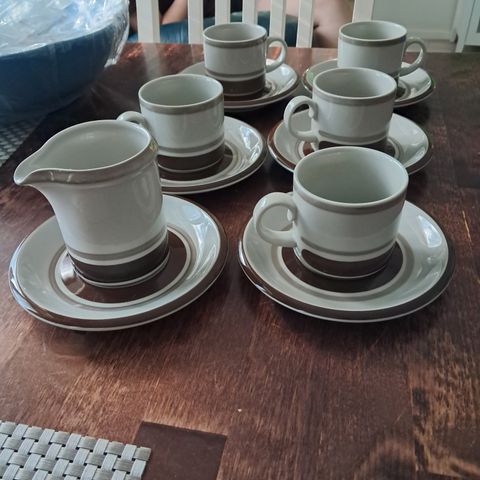 Kuvan 5 kpl Arabia Pirtti 5 kpl kahvikuppeja+5 kpl lautaset ja sokerikko jouten kaikki täysin ehjiä