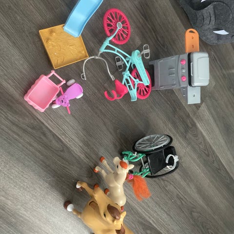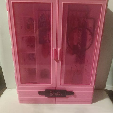 Barbie vaatekaappi, auto, vaatteita, barbeja ja muuta sälää