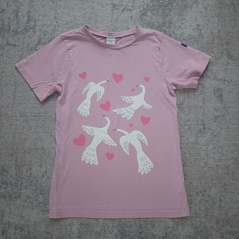 Nätti t-paita, kunto loistava lukuunottamatta kuvan alla olevaa pientä pistemäistä reikää. En ole aikaisemmin huomannut, nyt syynäämällä löytyi.