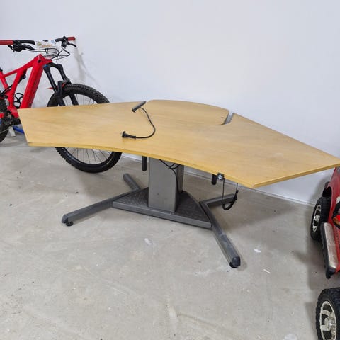 Sähköpöytä vaalealla suorakulmaisella kannella