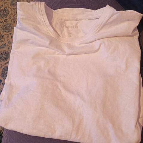 Käyttämätön, säilytyksessä rypistynyt Finlaysonin valkoinen t-paita.