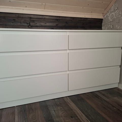 Ikea lipasto tummasta puumateriaalista. Lipastossa on useita vetolaatikoita vaatteiden tai muiden tavaroiden säilytykseen. Soveltuu makuuhuoneeseen, olohuoneeseen tai eteiseen yleiskäyttöiseksi säilytyskalusteeksi.
