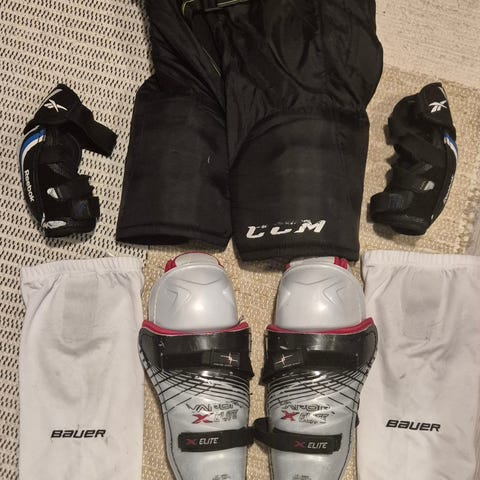 Reebok, CCM ja Bauer jääkiekkosuojat juniorille. Noin 122-134 cm lapselle.