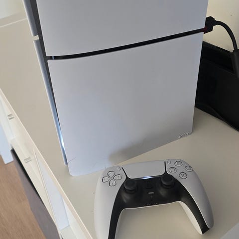 PlayStation 5 Slim Digital Edition 825 GB 2x ohjain. Pelattu noin 20h, muuten ollut viaplay/netlix käytössä. Ostettu kesällä -25 heinä-/elokuussa. Mukaaa virtajohto.