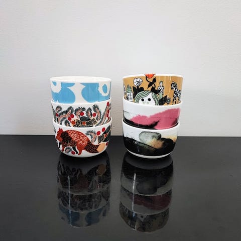 Myydään meille ylimääräisiä kuvassa näkyviä Marimekon astioita.
