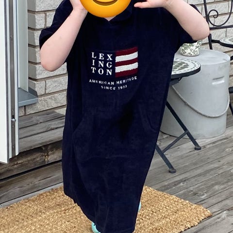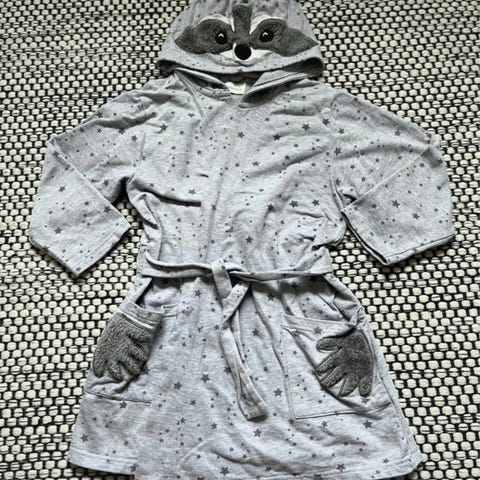 Terry cotton bathrobe with bunny rabbit ears on the hood. Used, in a good condition. The colour is light yellow. There are some threads pulled out here and there, but it looks very nice overall. True to size (110-116).