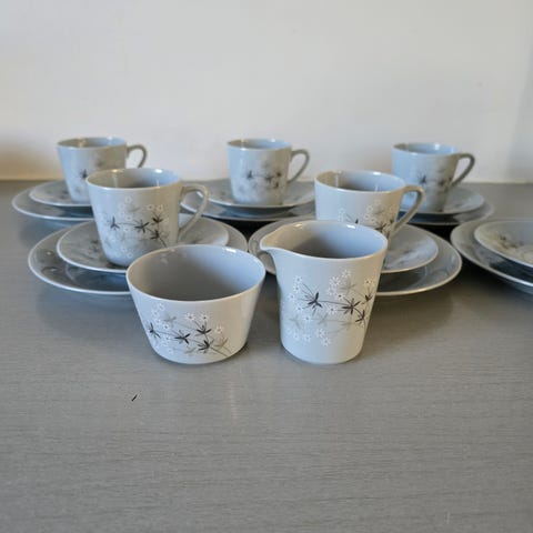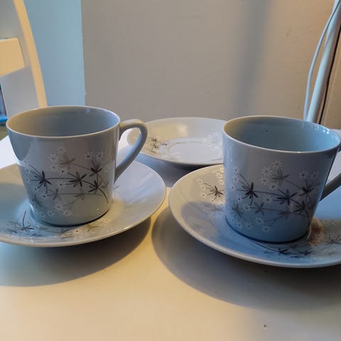 Kahvikupit kuppi kupit kahvi valkoiset kahvimuki kahvimukit valkoinen lumi lumikukat kahvikuppi Kesti arabia iittala mukit muki iittala iittalan tupa raita raitainen ajaton Valmistujaiset juhlat juhla 1980 tusina 1974 1985 sininen siniset harmaa harmaat tarjoilulautanen astiasto kahviastiasto kahviastiat