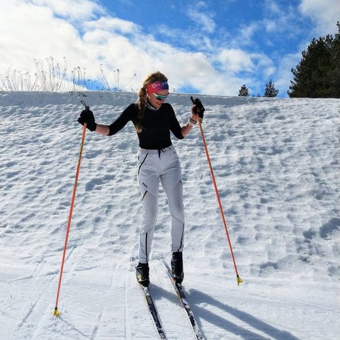 Suomen hiihtomaajoukkueen kisa-asun housut koossa M.