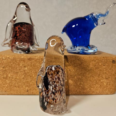 Lasiset norsu, etana ja pingviini, korkeudet 7cm 8€/kpl tai kaikki 16€