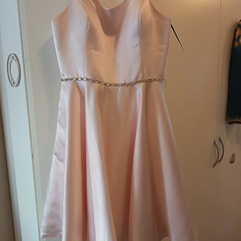 Kahdella ollut rippimekko kokoa 40 ja vastaa kokoaan. Selän nyörityksellä kokoa voi säätää. En löydä kunnosta moitteita. Saa sovittaa. Koiratalous.