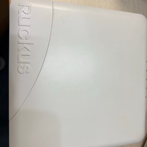 Ruckus ZoneFlex 7372 -reititin. Langaton tukiasema sisäkäyttöön. Laitteessa on useita kiinnityskohtia seinä- tai kattokiinnitystä varten. Pohjassa on liitäntöjä verkkokaapelille ja virransyötölle sekä laitteen tunnistetiedot ja merkinnät. Soveltuu esimerkiksi kodin tai toimiston lähiverkon langattoman yhteyden jakamiseen yhteensopivien verkkolaitteiden kanssa.