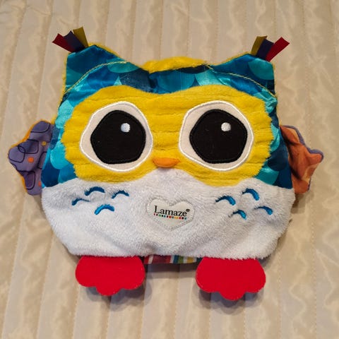 Pehmpopöllö josta kuuluu musiikkia ja näkyy valoja. Käyttämätön. Jotain punaista jälkeä löytyi.