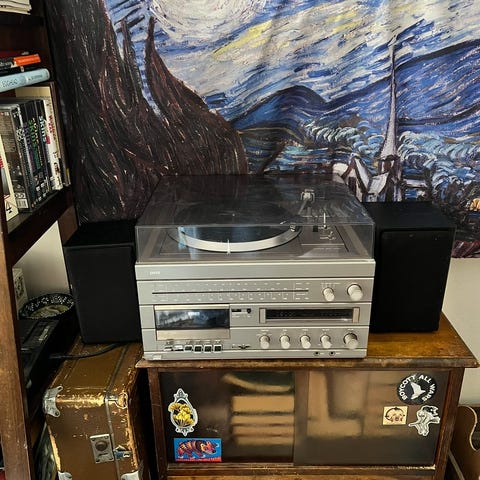 LP levysoitin CD-radiojärjestelmä kaiuttimilla +kasettidekki musta